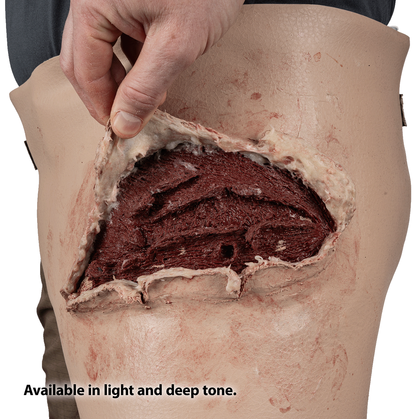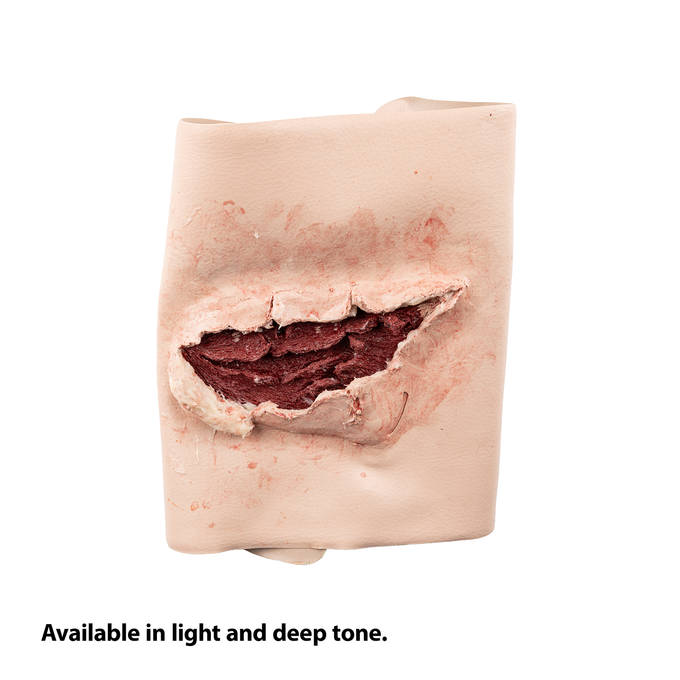 The Packable Open Wound (Versatile Placement) Moulage Task Trainer is one of the most versatile wounds in the SMRT collection, when applied to the limbs or torso. This open wound can represent blunt, blast or other penetrating injuries.